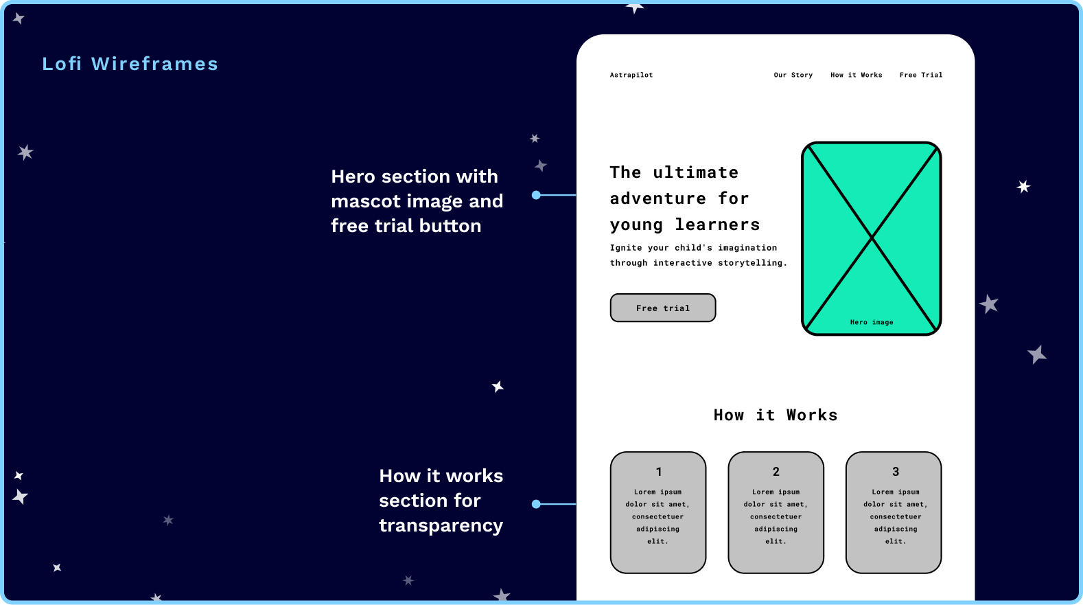 Based on observations from the competitive analysis, I developed lo-fidelity wireframes that prioritized friendliness, transparency, and trust-building.